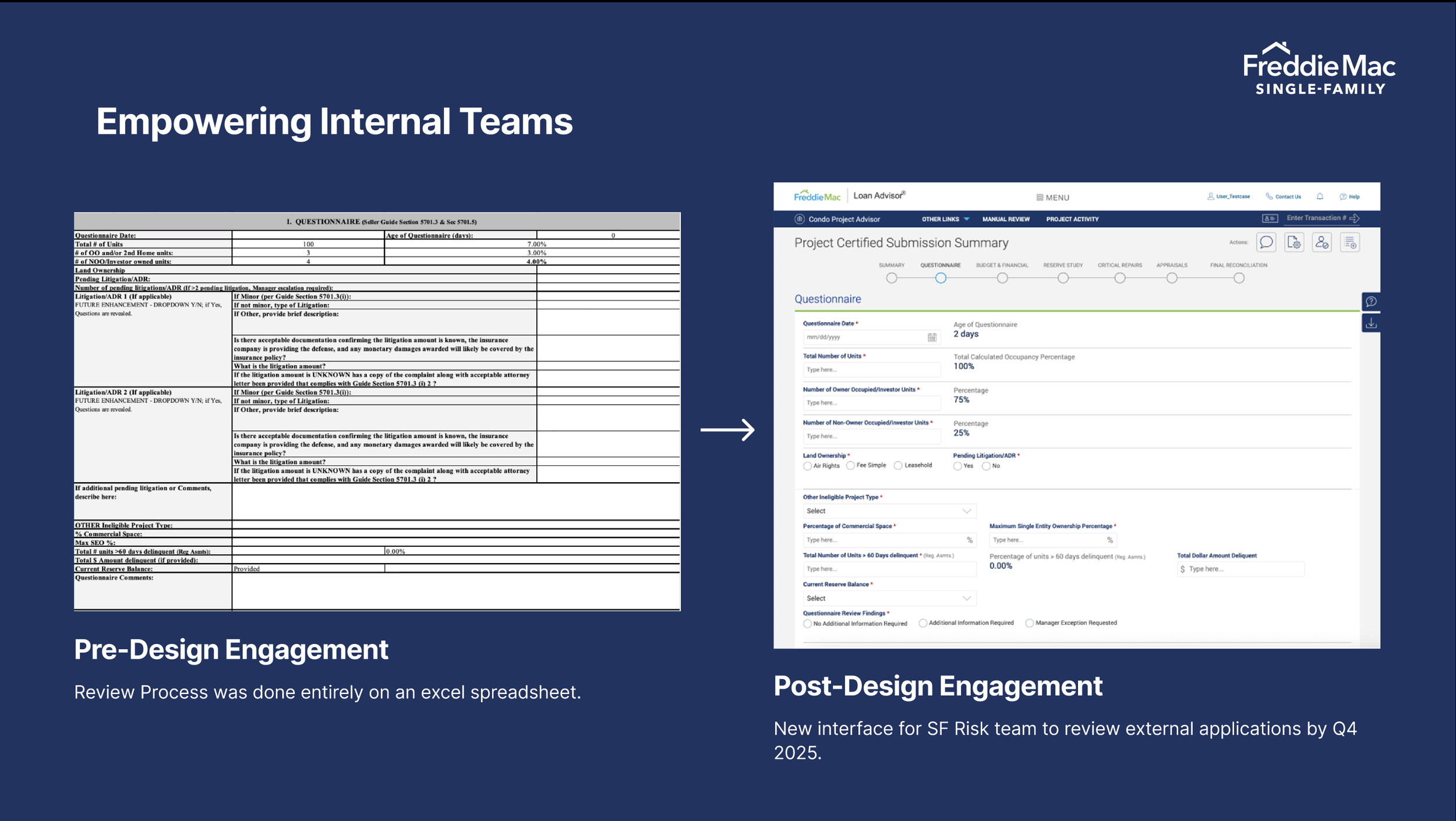 Maximize value for Freddie Mac through enhancing user experience, driving consistency, and implementing features that directly respond to customer needs. As well as creating efficiencies and time savings within SF Risk Team’s review process within CPA.